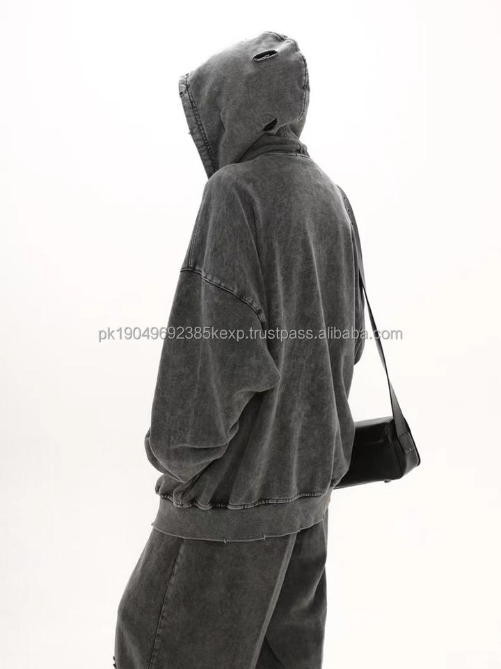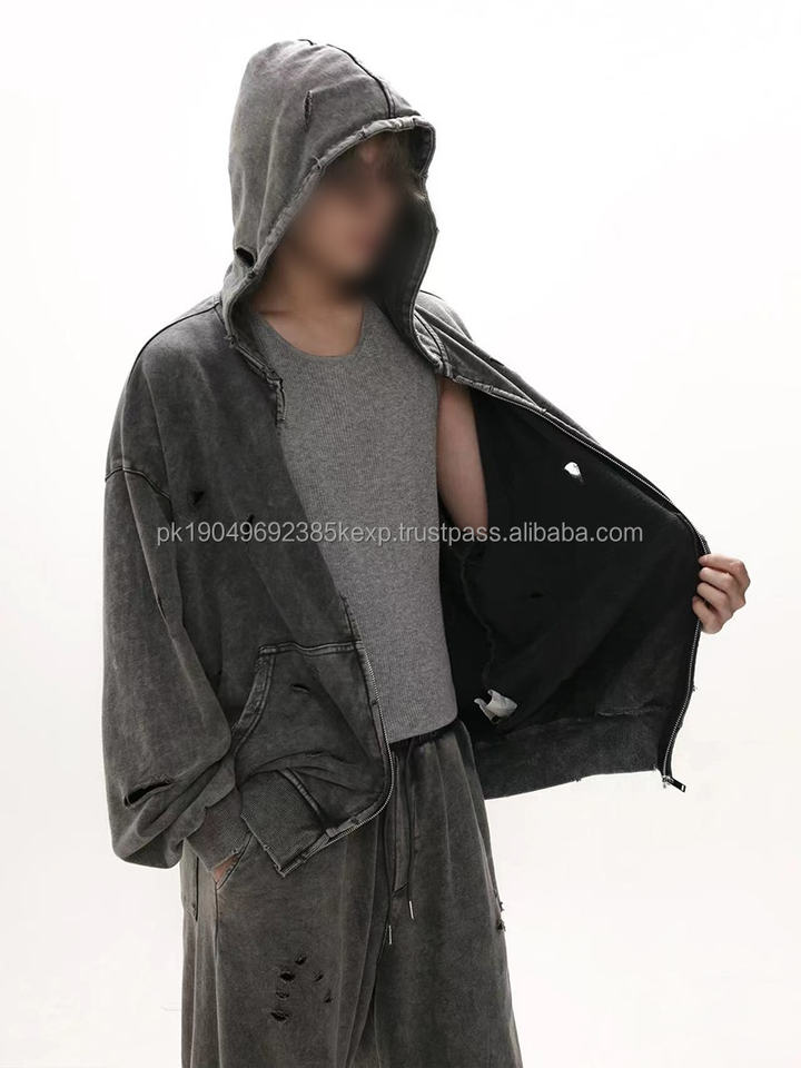 Sudadera con capucha y cremallera desgastada para hombre, estilo retro americano, holgada, de tendencia, versátil, para parejas, ODM, Colección Otoño Invierno 2026