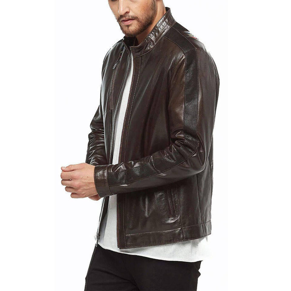 2025 Otoño Invierno chaqueta de cuero para hombre Color Europeo Americano empalme soporte cuello cremallera Venta caliente para hombres a la venta