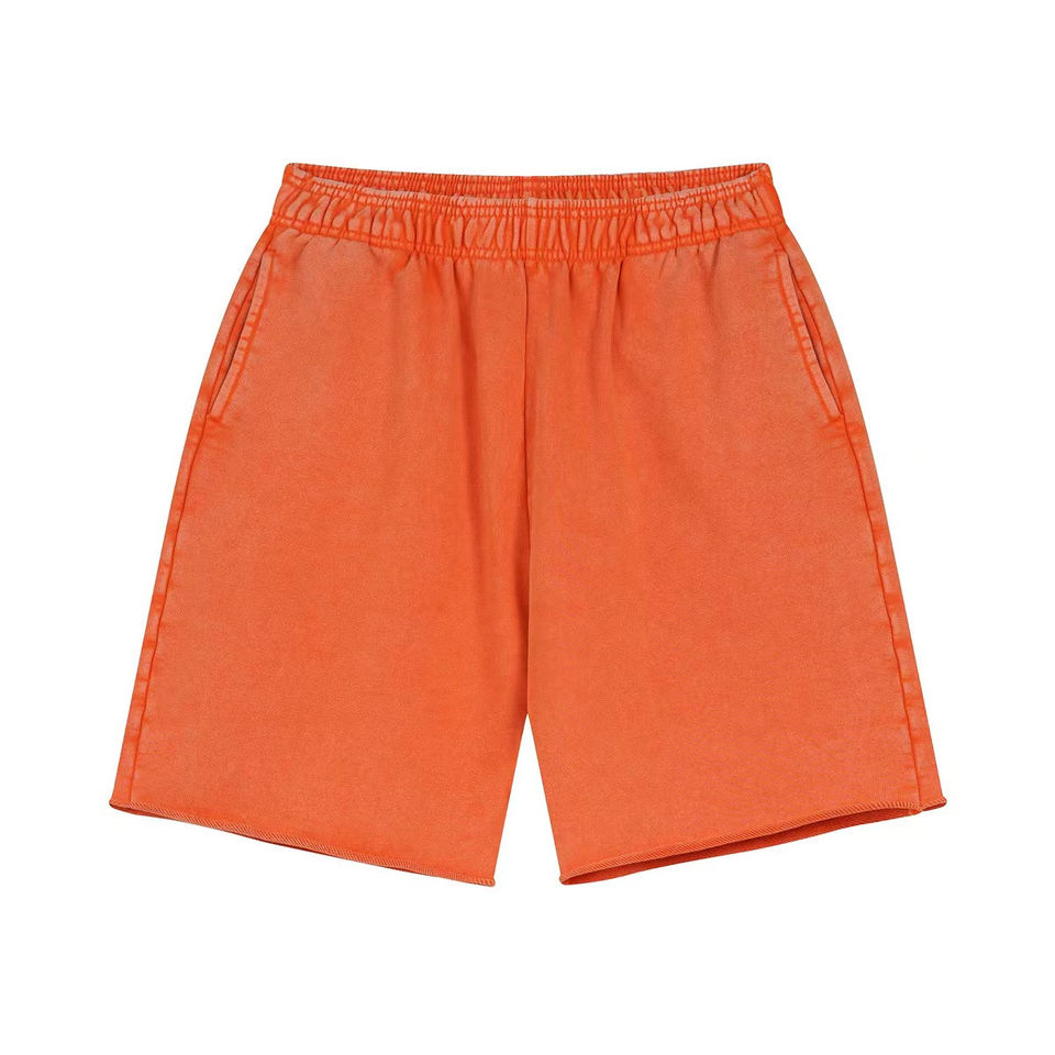 Ropa de calle personalizada unisex de verano, pantalones cortos Vintage 3D Puff estampado Raw Hem, tela de pana de algodón de rizo francés para hombre, no tejida