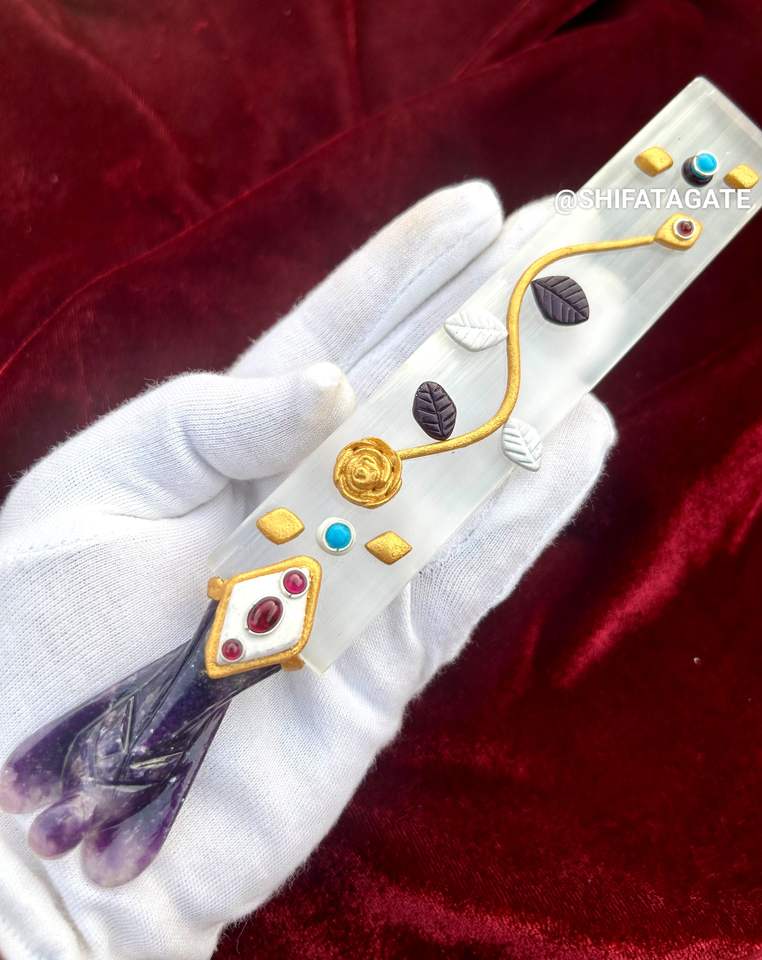 Product Name:Lepidolite Angel And Selenite Klay Work Flat Wand Crystal Wand
