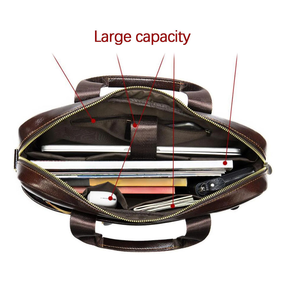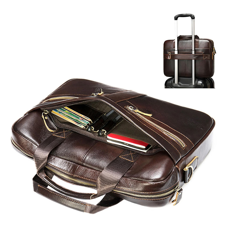 Maletín para portátil de cuero de vaca y PU ligero superventas 2025, calidad genuina, diseño único, cierre de cremallera para uso en la oficina