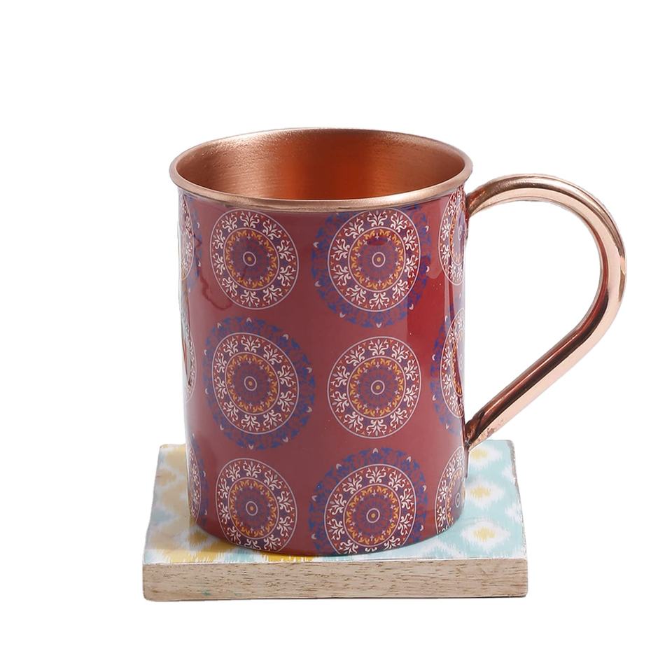 Taza de cobre impresa del producto más vendido de 2025 con mango de cobre puro para artículo de regalo Tapa a prueba de fugas, aislamiento al vacío, taza de café