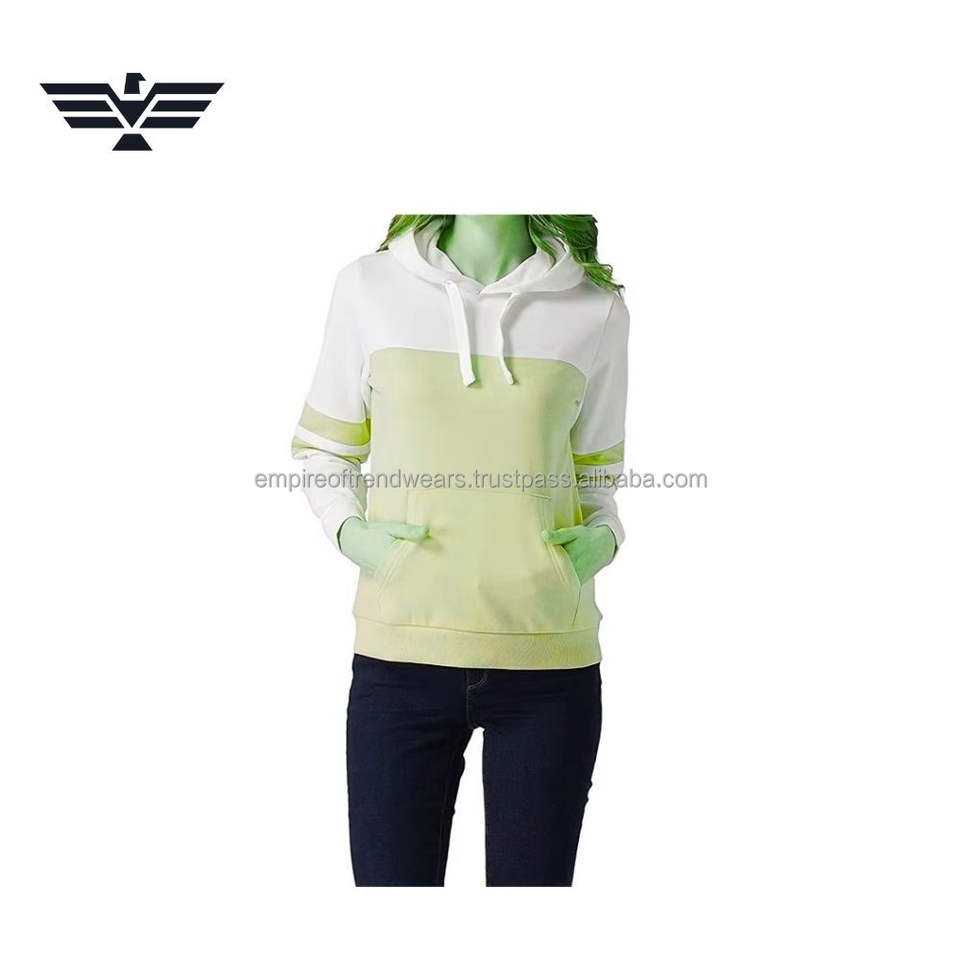 Sudadera con Capucha Larga de Bloques de Color Personalizada para Mujer, Estilo Urbano, Diseño de Punto de Lana, Temporada de Invierno, 100% Algodón, Superventas 2025