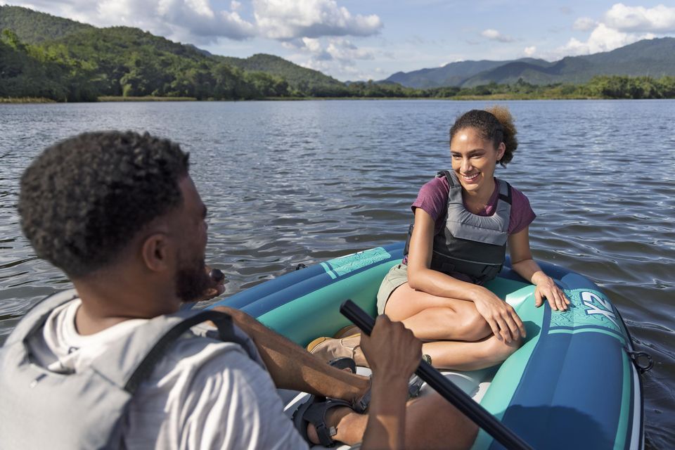 Kayak Inflable de PVC Bestway 61153 Trick 2 2025 para Remar en Ríos, Canoa de 2 Plazas con 2 m de Longitud y Casco de PC para Dos Personas