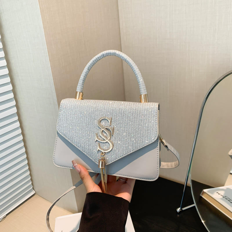 Bolso Bandolera de Mujer de Cuero Sintético Brillante 2025, Bolso Cuadrado Bonito con Borla, Correa Única, Moderno y Elegante