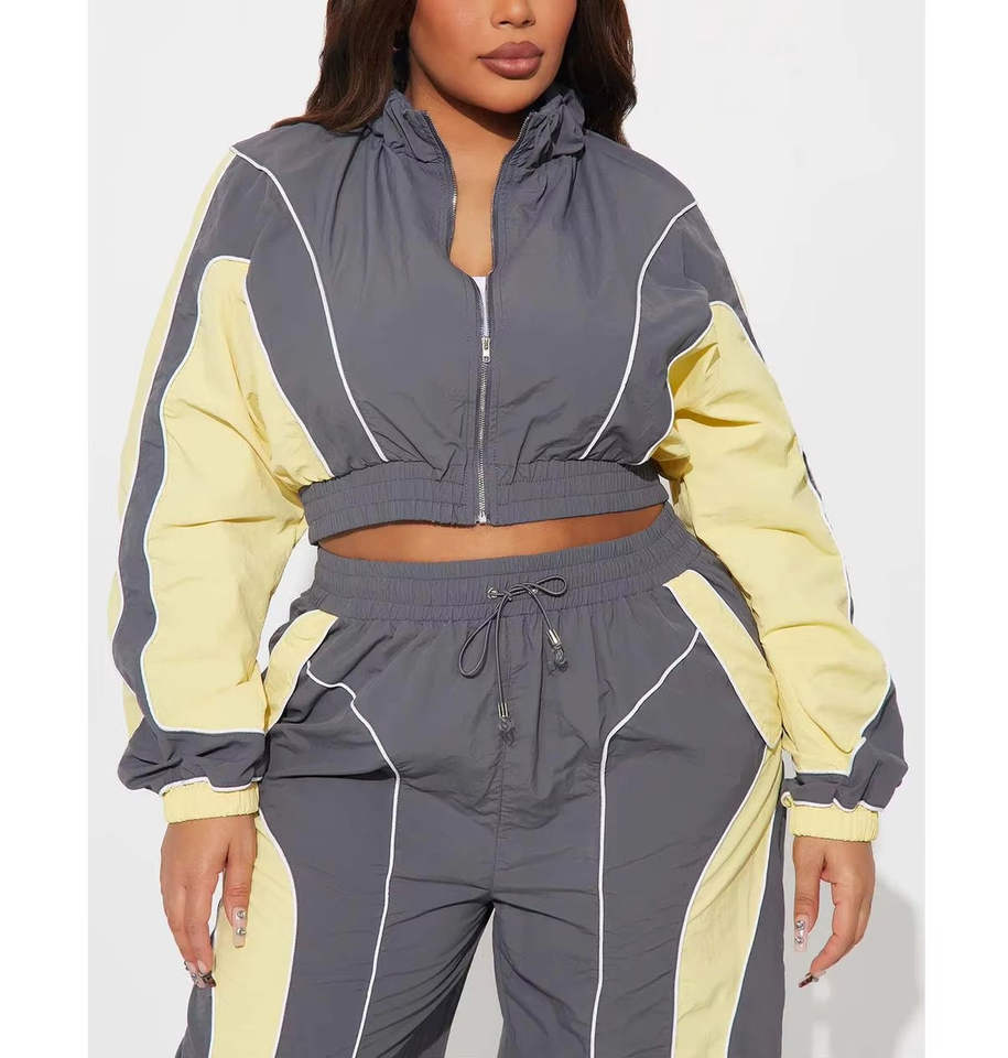 Chándales transpirables 2025 para mujer en talla grande, conjunto de chándal de nailon de calidad personalizada para mujer, chaqueta con cremallera, impermeable ligero