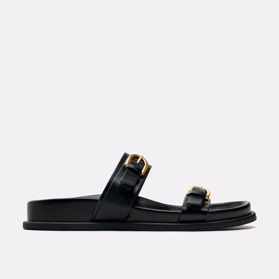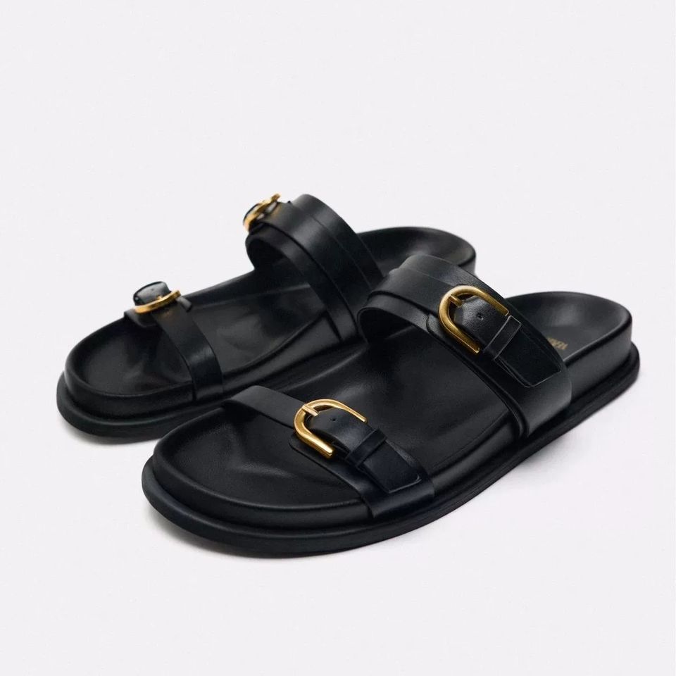 Sandalias de mujer a la moda 2025, con hebilla, transpirables, punta abierta y redondeada, tipo chancla de suela plana