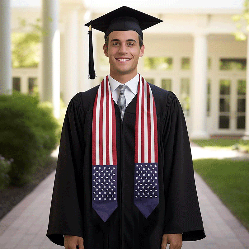 2025 poliéster barato todo el país personalizar Logo estudiantes alta calidad Kente Honor hispano estola graduación Serape bufanda