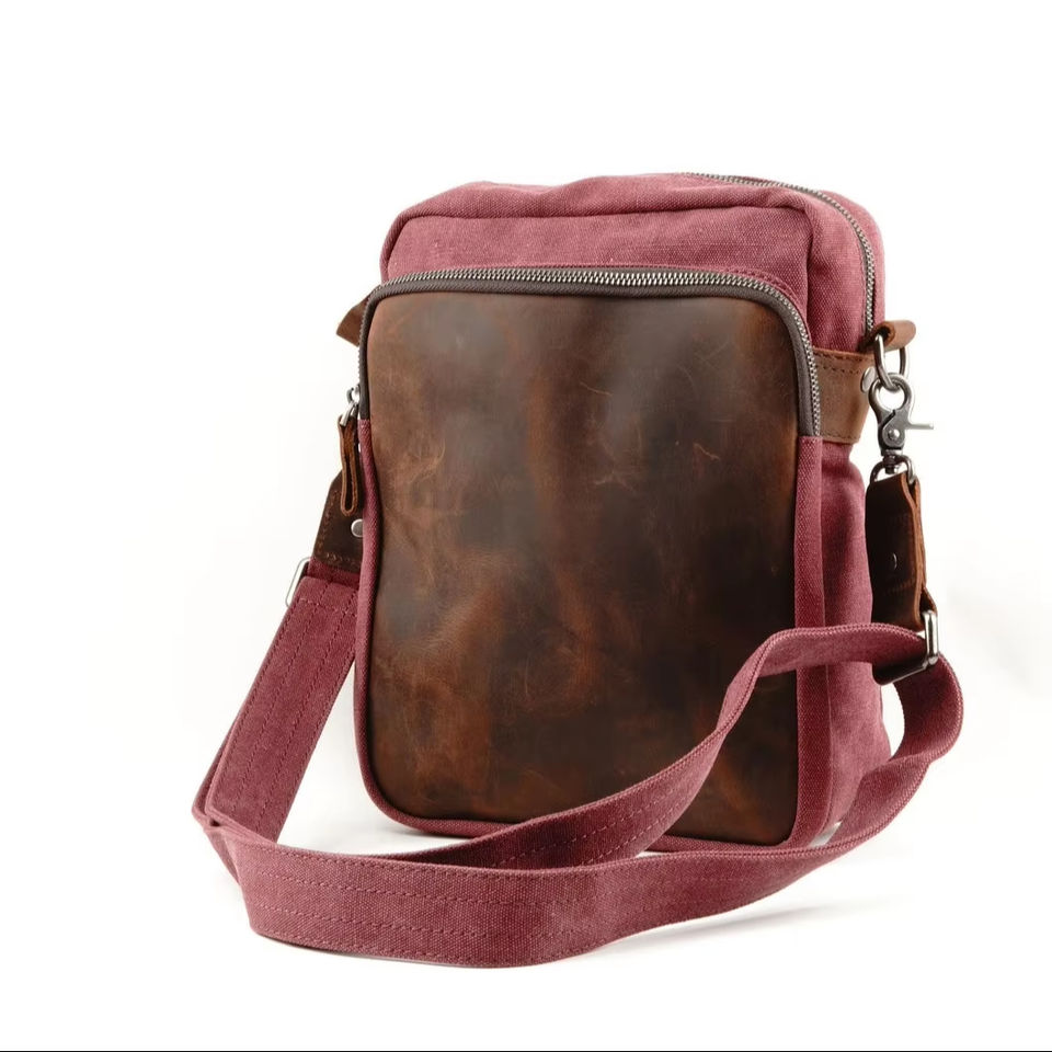 Palabras clave:Cuero real y lona Sling Bag