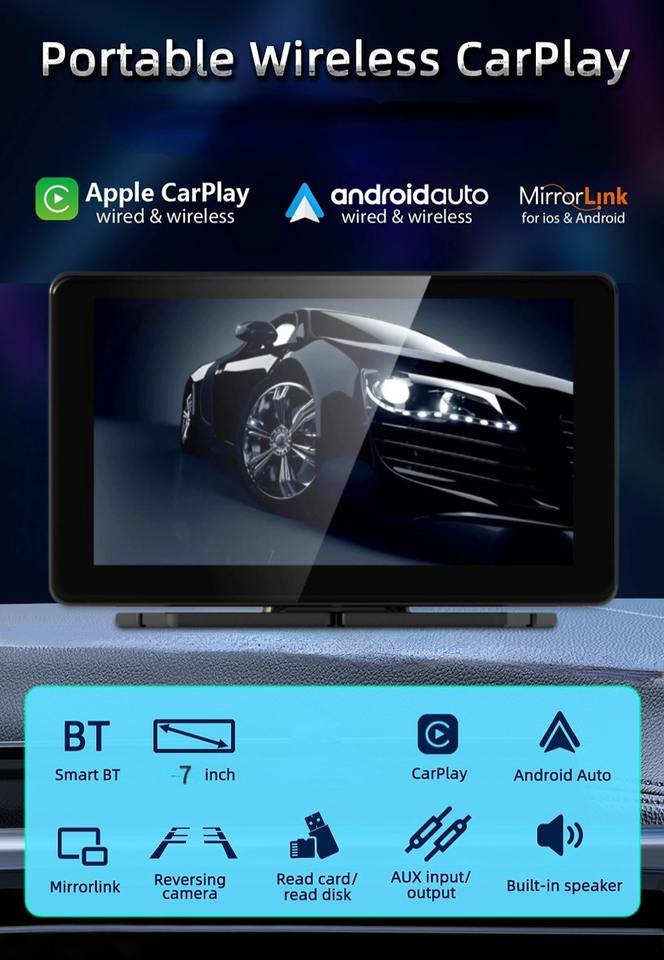 Nombre del producto:7 pulgadas pantalla táctil impermeable DVD carplayer