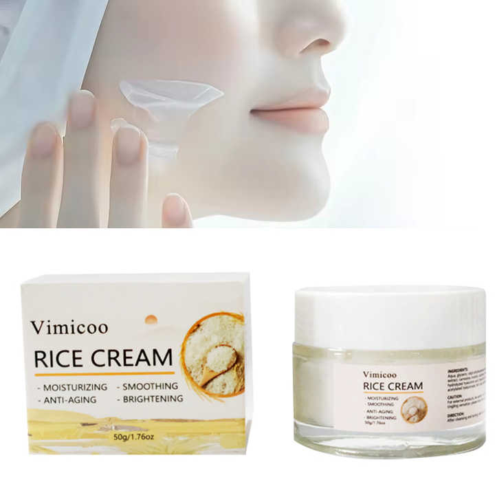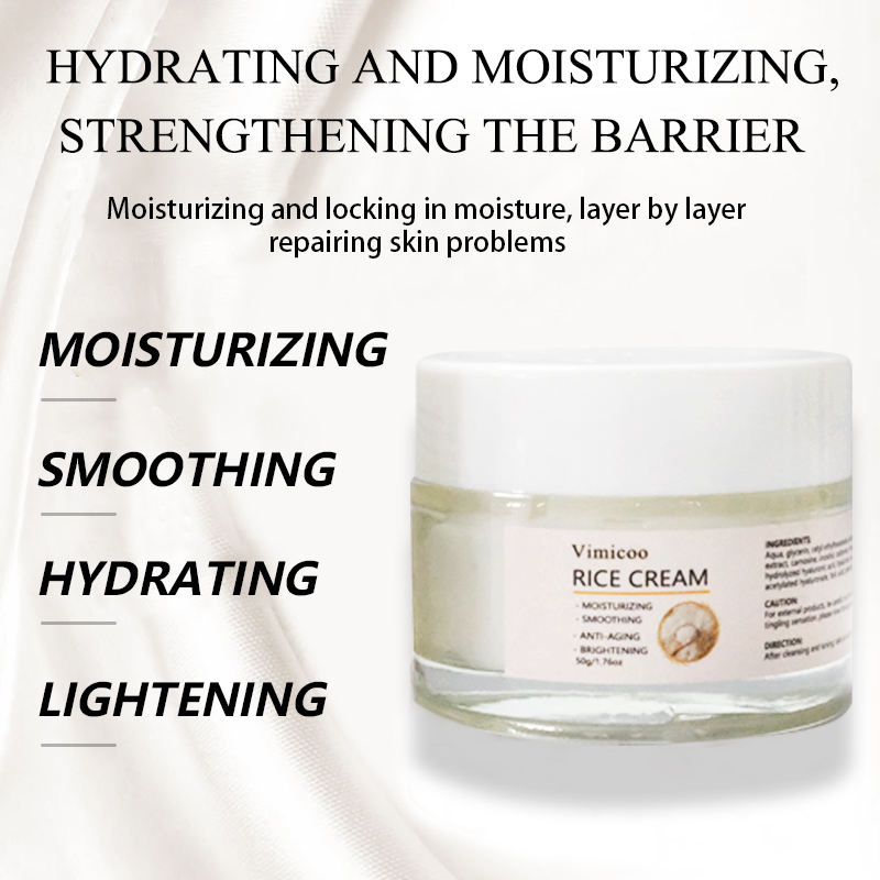 Crema de arroz orgánica de 50g personalizada 2025 con ingredientes de ácido hialurónico, gran oferta, crema hidratante suavizante reparadora de colágeno