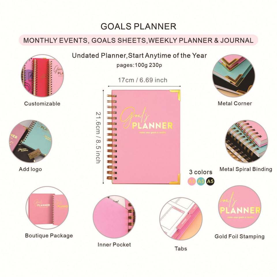 Agenda Personalizada 2025, Tapa Dura A5, Sin Fecha, Encuadernación en Espiral, Planificador de Autocuidado, Cubierta de Cuero Promocional, Caja de Regalo Personalizable