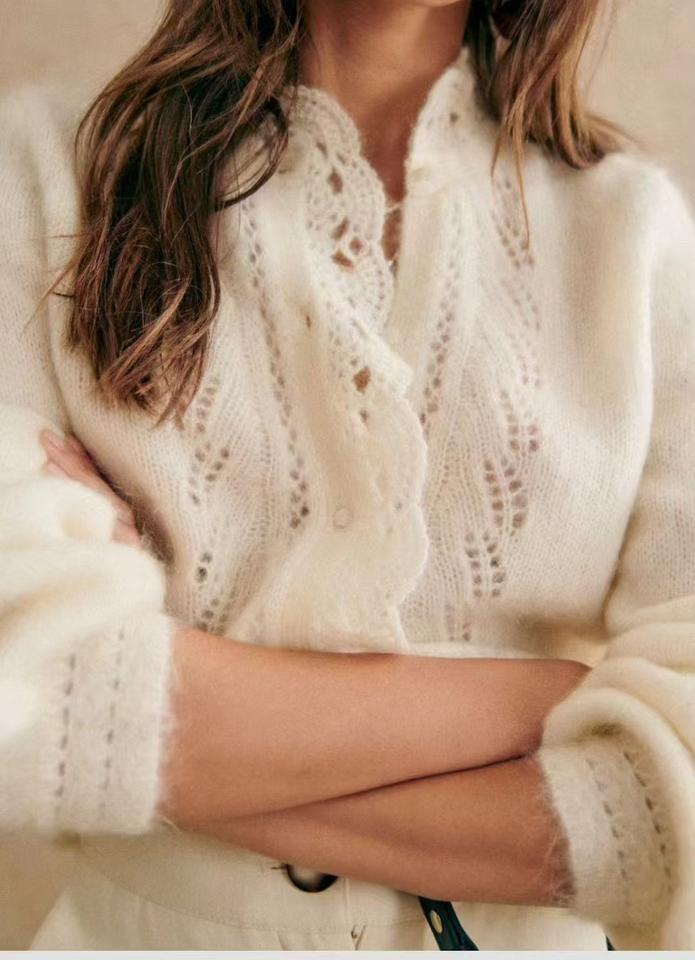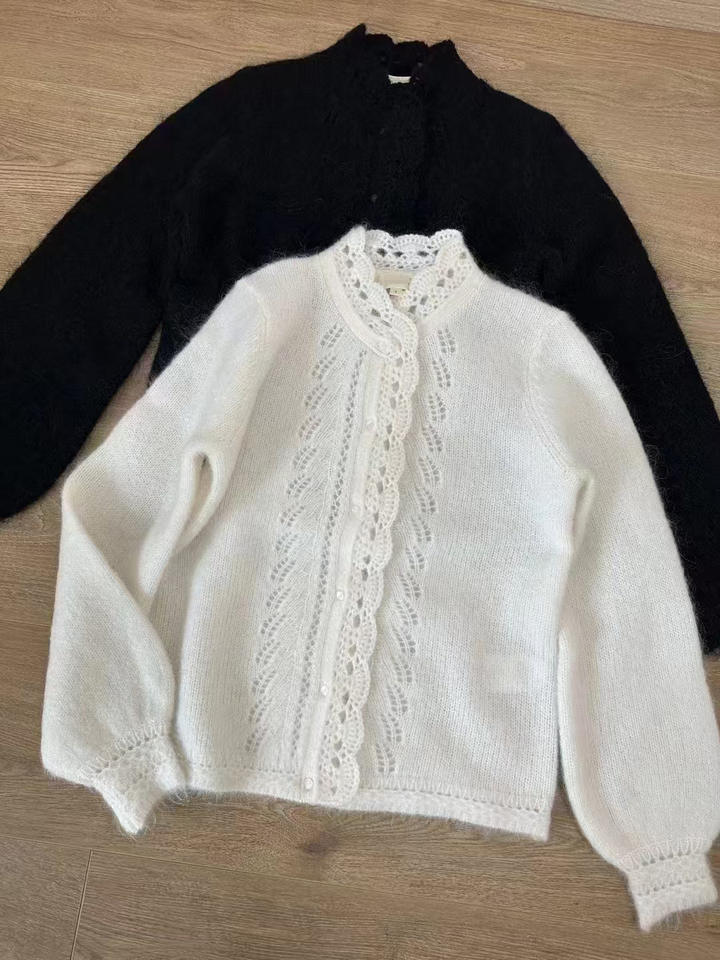 Suéter de Punto Abierto con Mangas Abullonadas y Diseño Personalizado con Logotipo, Estilo Casual y Acogedor para Primavera y Otoño 2025, para Mujer