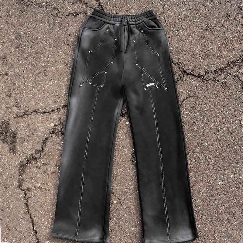 Conjunto de pantalones de chándal con capucha desgastados personalizados 2025, chándal acampanado de peso pesado, chándal de lavado ácido para pantalla de gran oferta de invierno