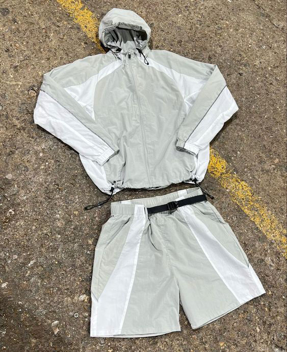 Chándal de peso ligero personalizado 2025, conjunto corto cortavientos con cremallera reflectante, conjunto de dos piezas de cortavientos de nailon y poliéster, longitud completa