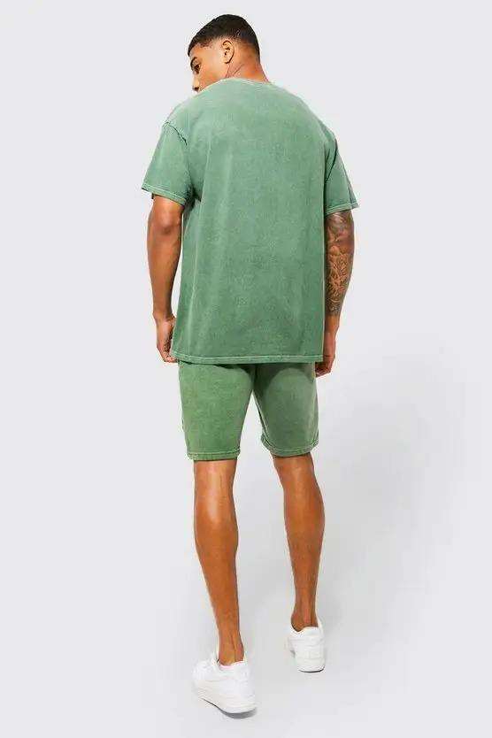 Chándal para hombre con logotipo personalizado 2025, pantalones cortos lavados con ácido de algodón, ropa deportiva para gimnasio, Jogger de verano, conjunto de pantalones cortos de 2 piezas para hombre, servicio OEM