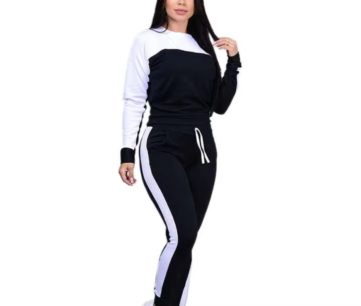 2025 chándal de gran tamaño de Color sólido con logotipo personalizado para mujer, chándal básico de dos piezas de algodón de alta calidad para mujer, conjuntos