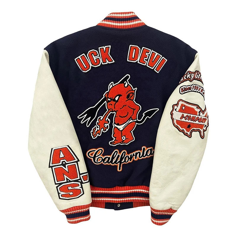Chaqueta universitaria de béisbol con bordado de lana y logotipo personalizado 2025 para hombre, chaqueta con letras de invierno, Mangas de cuero de retazos