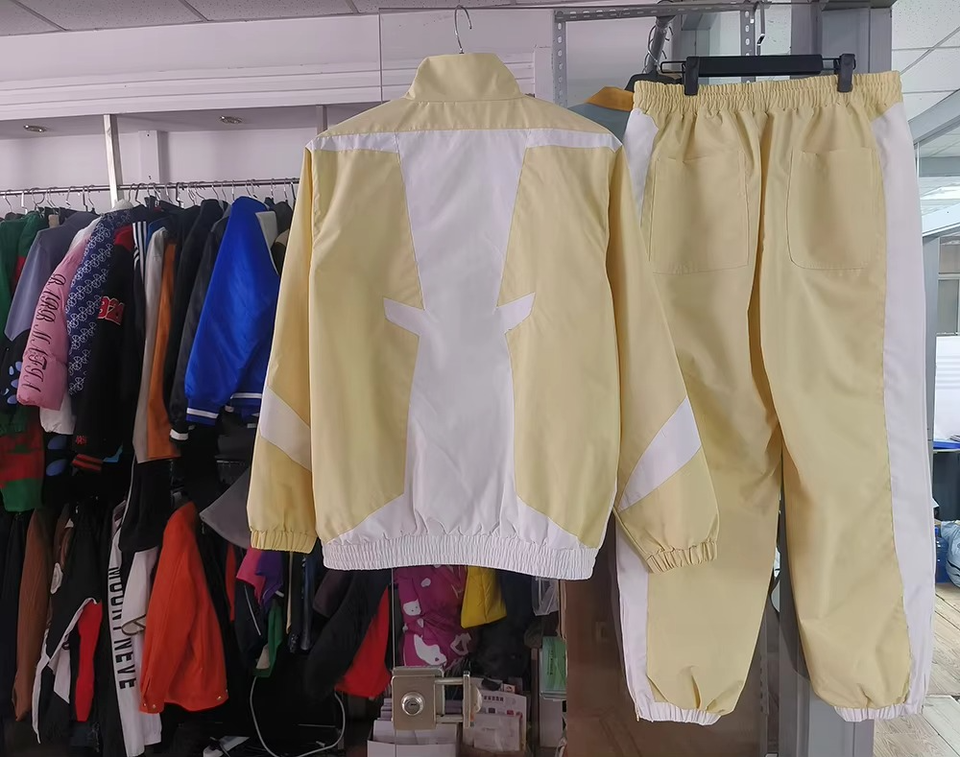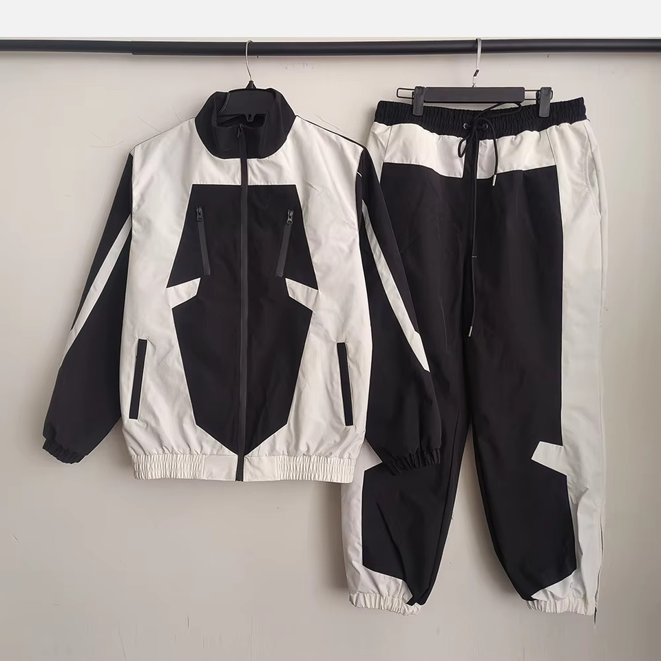 Conjunto de ropa de abrigo cortavientos de poliéster de gran tamaño para hombre personalizado 2025, camisetas activas, pantalones de chándal de nailon, impermeables, transpirables, parte delantera
