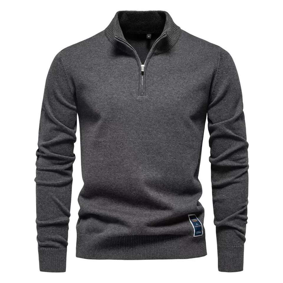 2025 media cremallera personalizada para hombre para Polo Color sólido suéter cómodo de negocios transpirable Anti-retráctil lienzo bordado