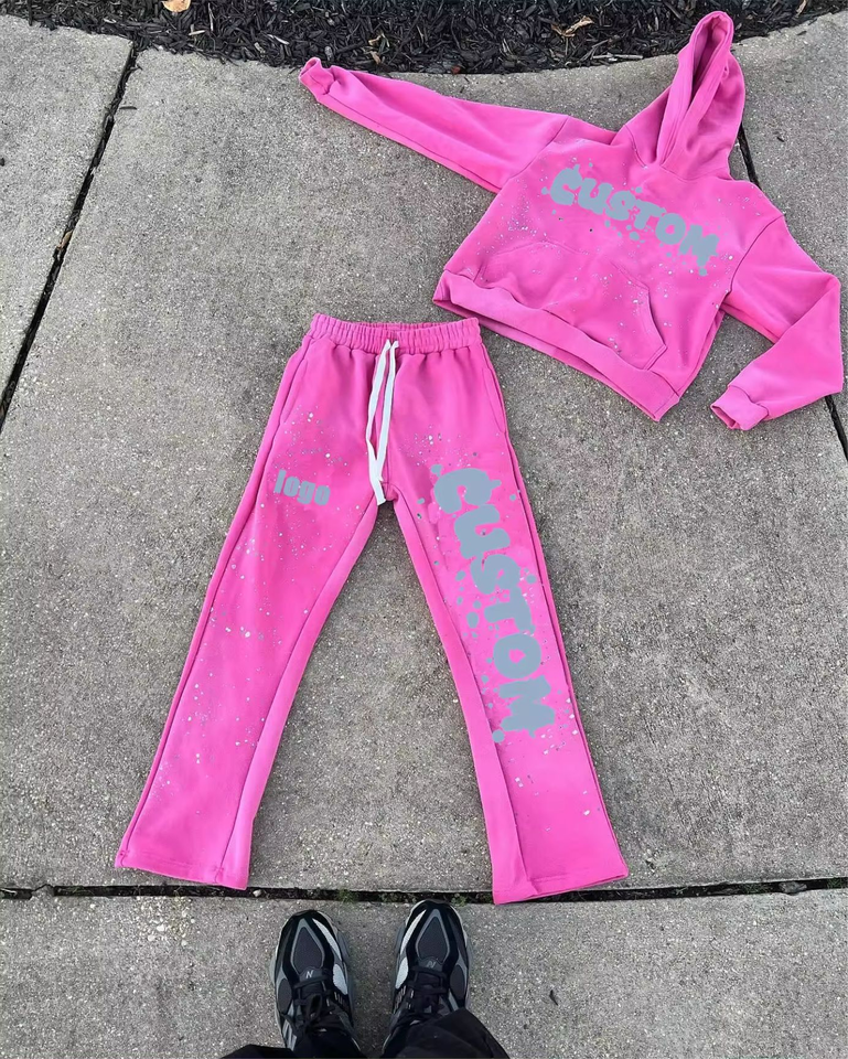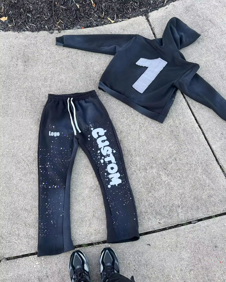 Conjunto Deportivo Personalizado para Hombre, Talla Grande, Estilo Urbano, 2 Piezas, Pantalones Deportivos de Algodón con Corte Acampanado y Sudadera con Capucha, Lavado Ácido