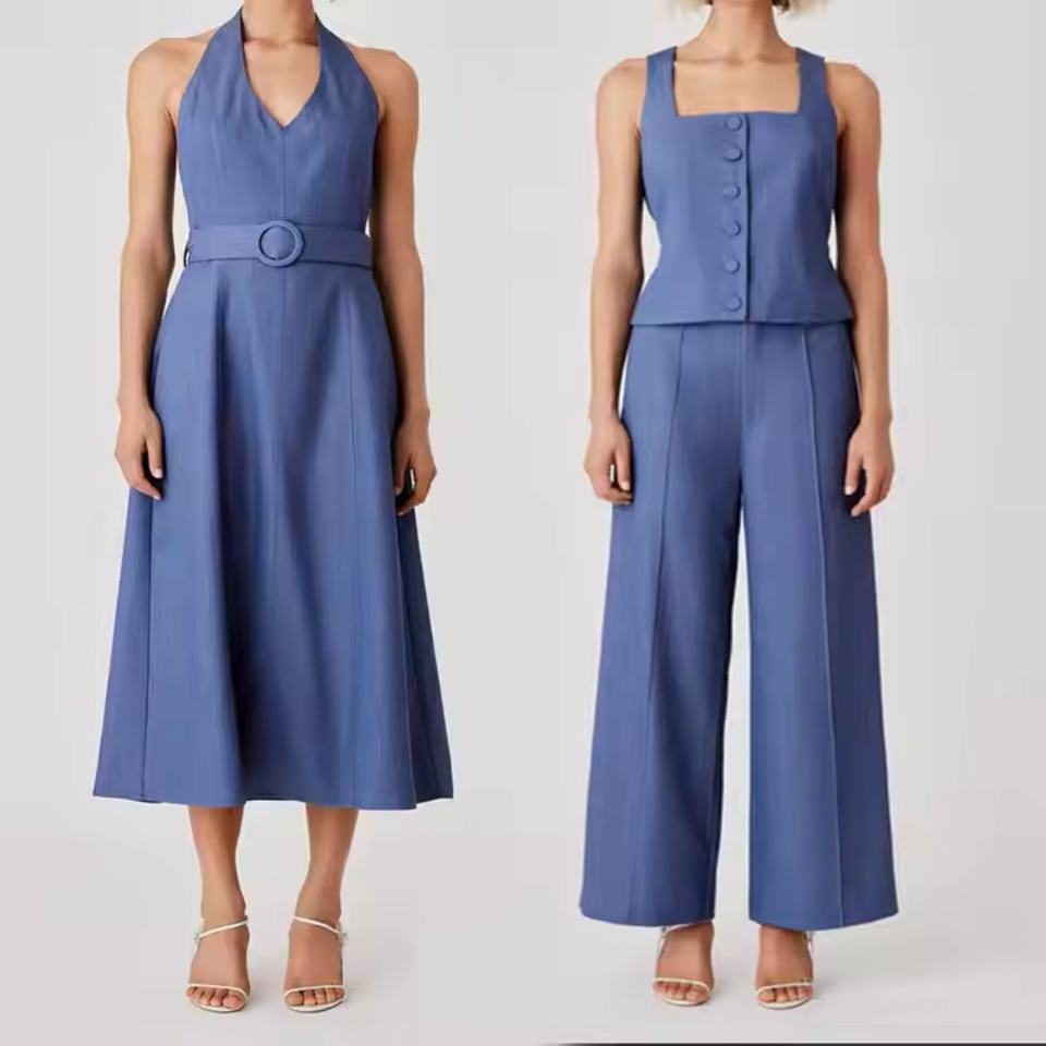Vestidos Midi Halter de Verano 2025, Personalizados, Modestos, Elegantes y Cómodos, de Mezclilla y Algodón Plisado, para Damas