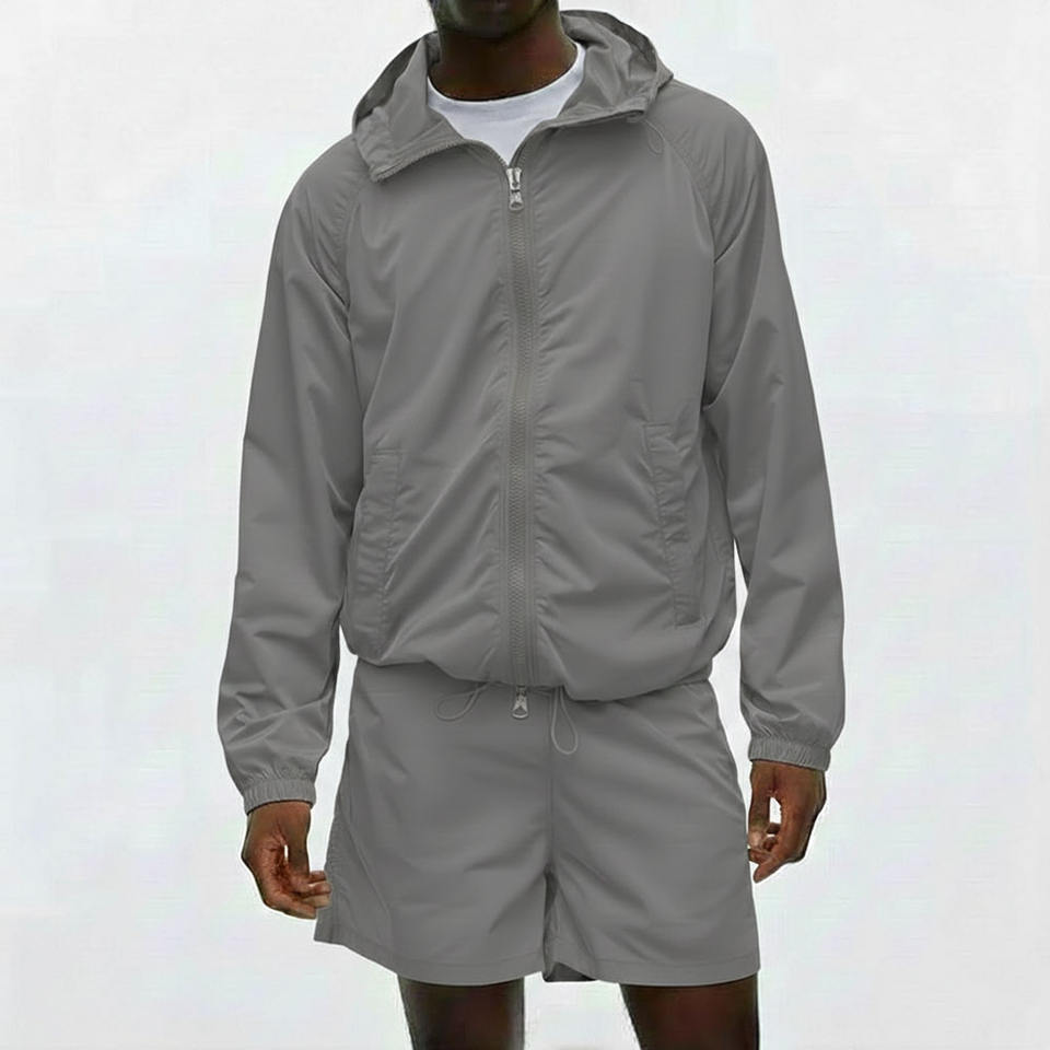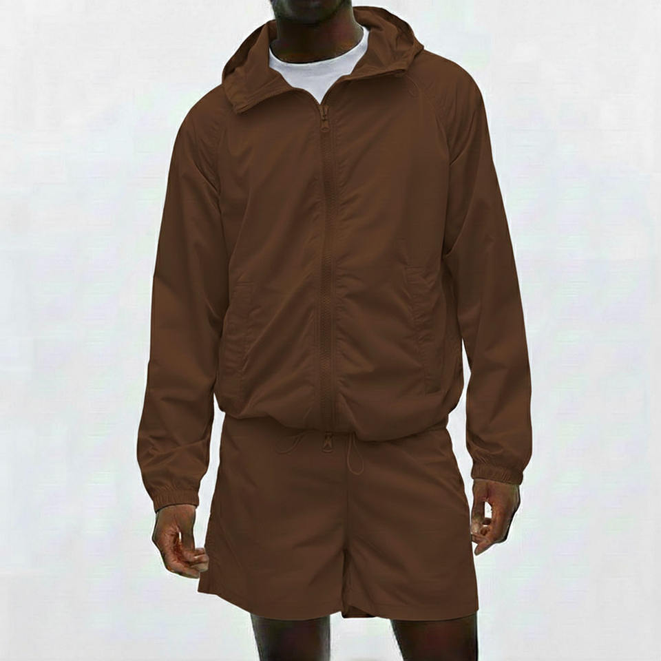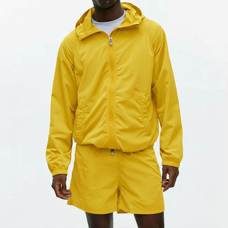 Conjunto Deportivo de Dos Piezas Personalizado 2025, Unisex, Tallas Grandes, Chaqueta Cortavientos Transpirable de Nailon y Poliéster, Pantalones Cortos con Capucha para Verano