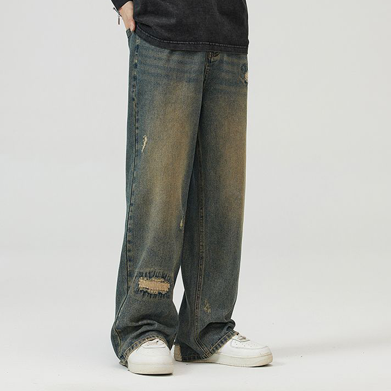 Jeans Baggy Rotos Personalizados 2025 para Hombre, Estilo Urbano Vintage, Lavados, Casuales, con un Toque Moderno, de Pierna Recta y Holgada