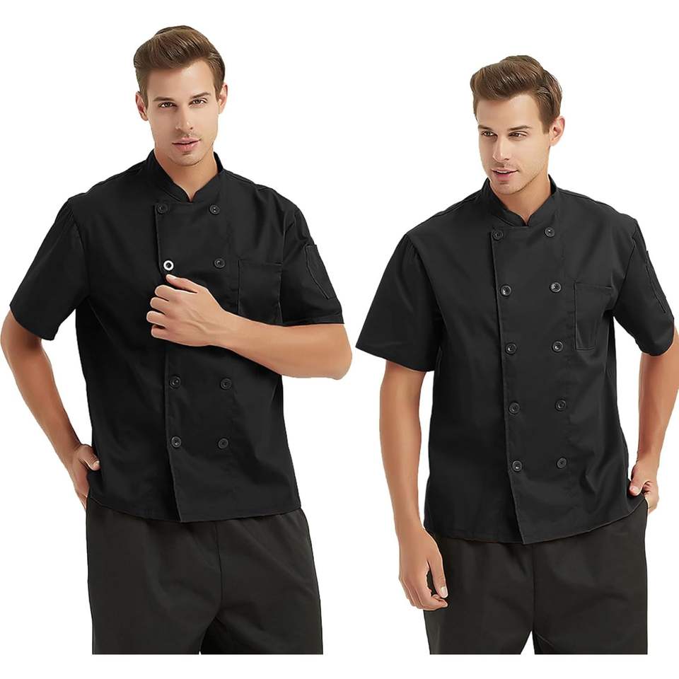 2025 chaqueta de Chef de manga corta personalizada uniforme de lona personalizado con nombre y logotipo para servicio de comida para uso en restaurantes y hoteles