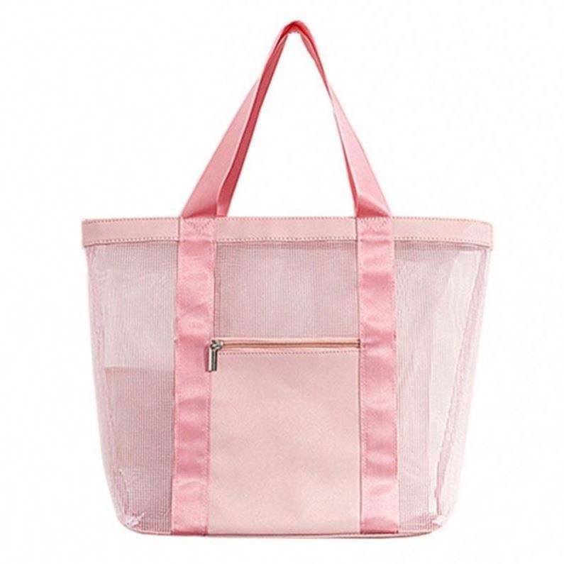 Bolsa de Compras de Malla Azul Personalizable de Alta Calidad con Logotipo Impreso Personalizado 2025, Bolsas de Playa de Verano de Malla de Poliéster Negras para Mujer