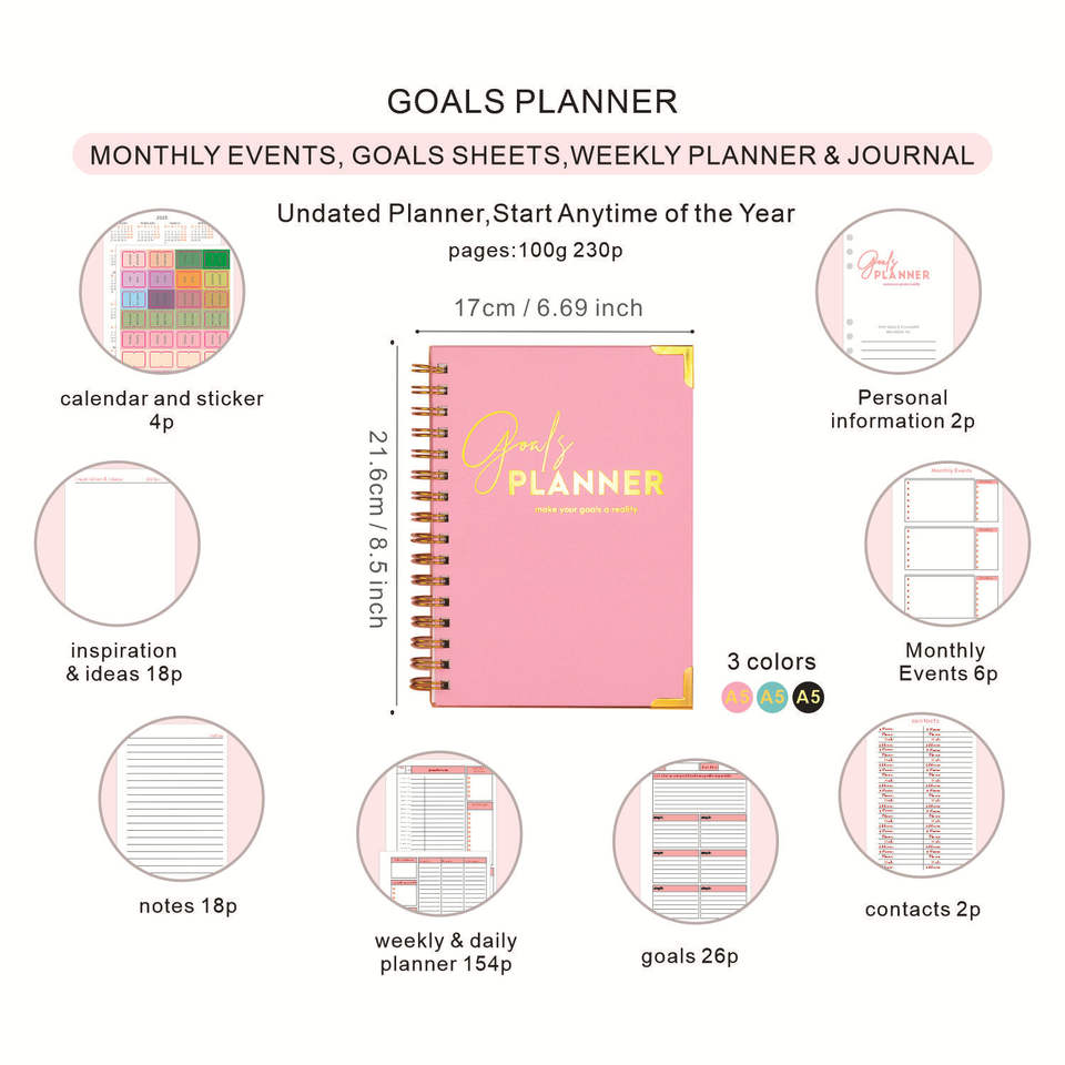 Agenda Personalizable 2025 con Impresión, Planificador Semanal en Inglés, Cuaderno de Papel Recubierto A5, Juego de Regalo, Gran Venta