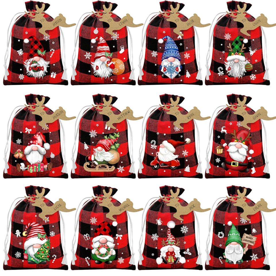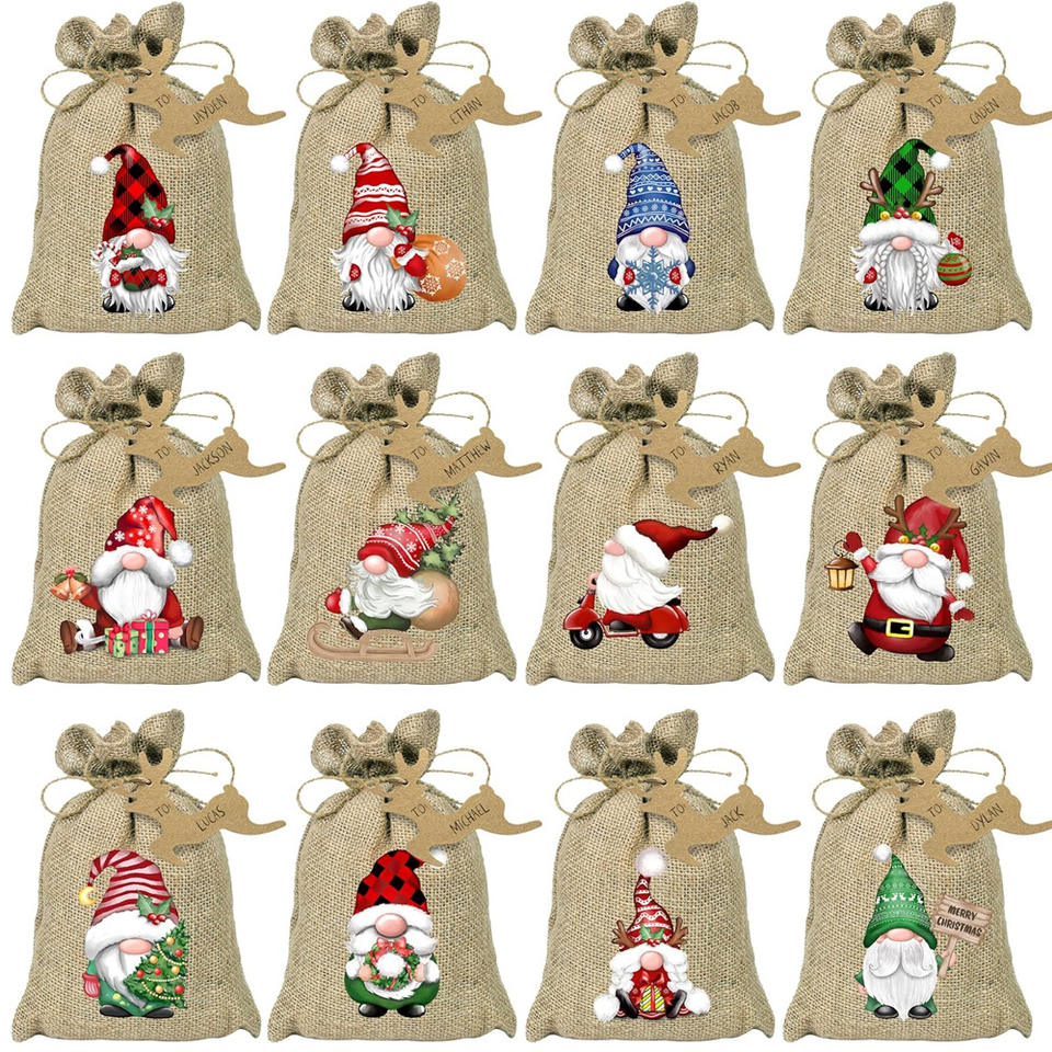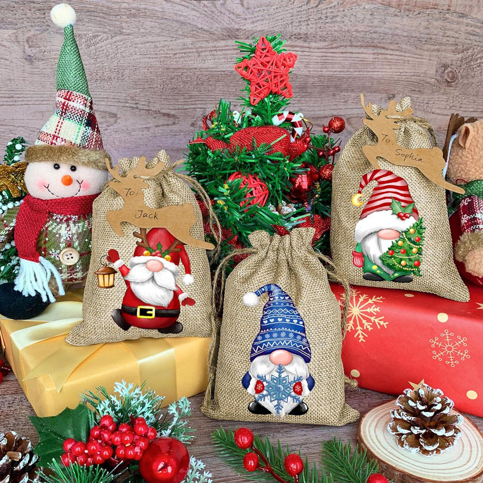 Bolsa de regalo con cordón de lino tejido personalizado 2025 con logotipo personalizado para suministros de vacaciones de Navidad (tela de algodón de azúcar)