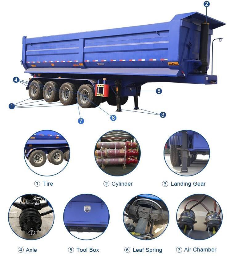 H Star personalizado 4 ejes 42-45CBM carga 60-80Ton acero de alta resistencia T700 remolque de barco volquete lateral volquete trasero semirremolque