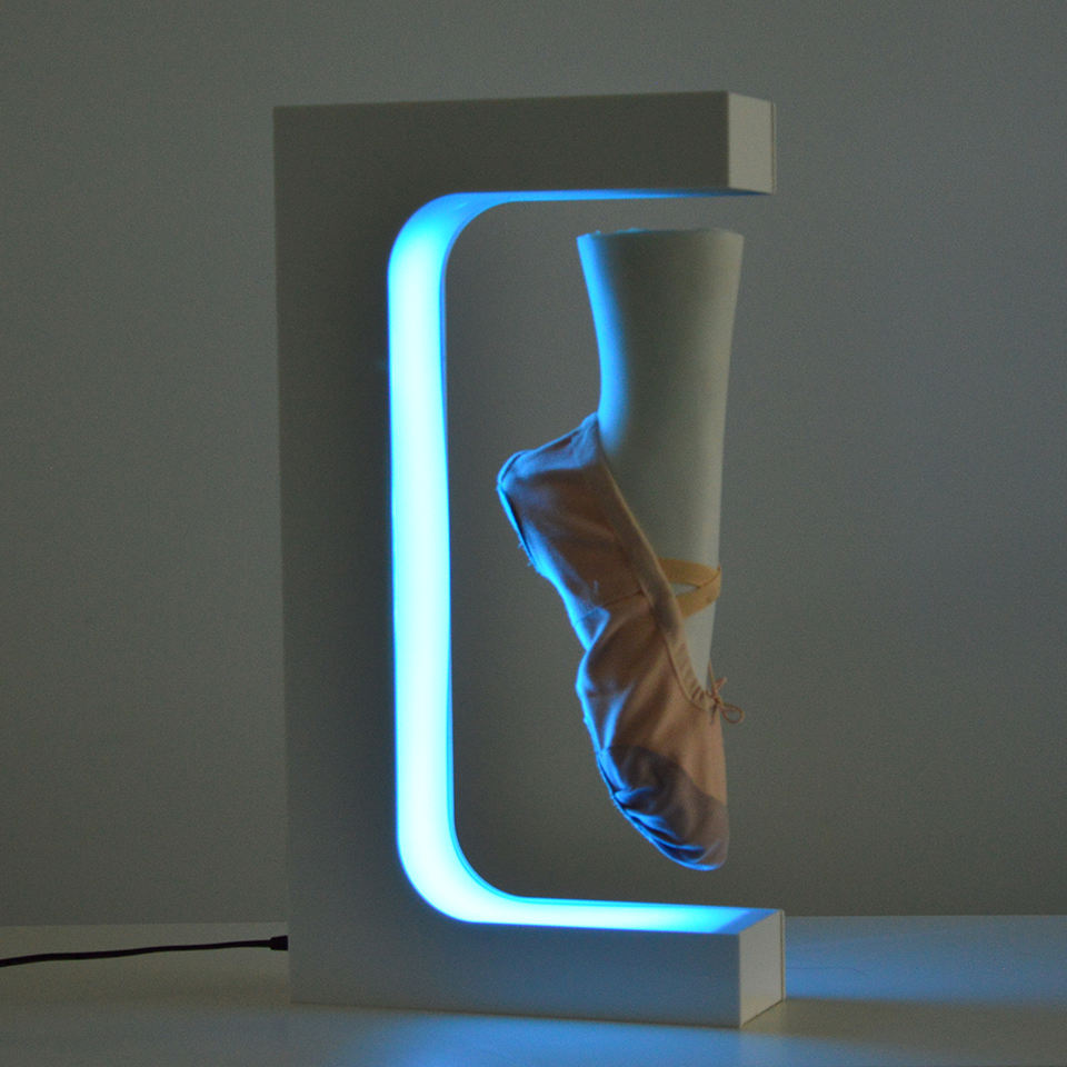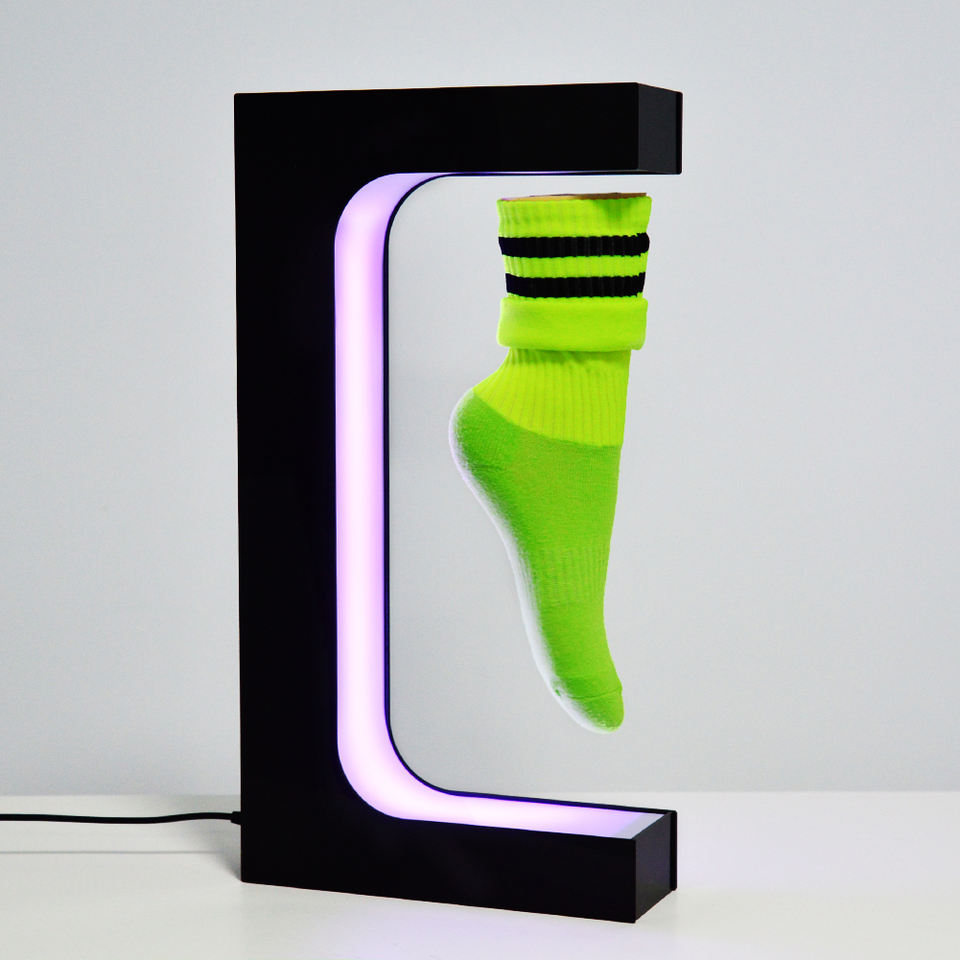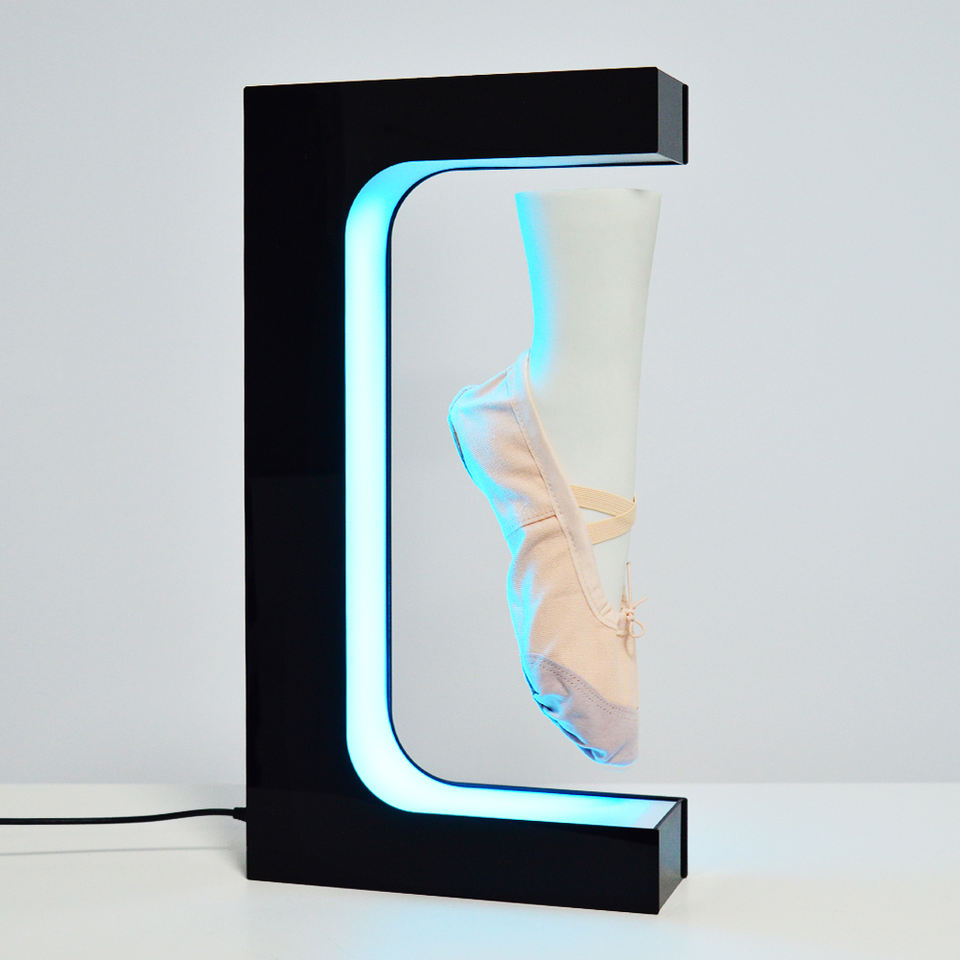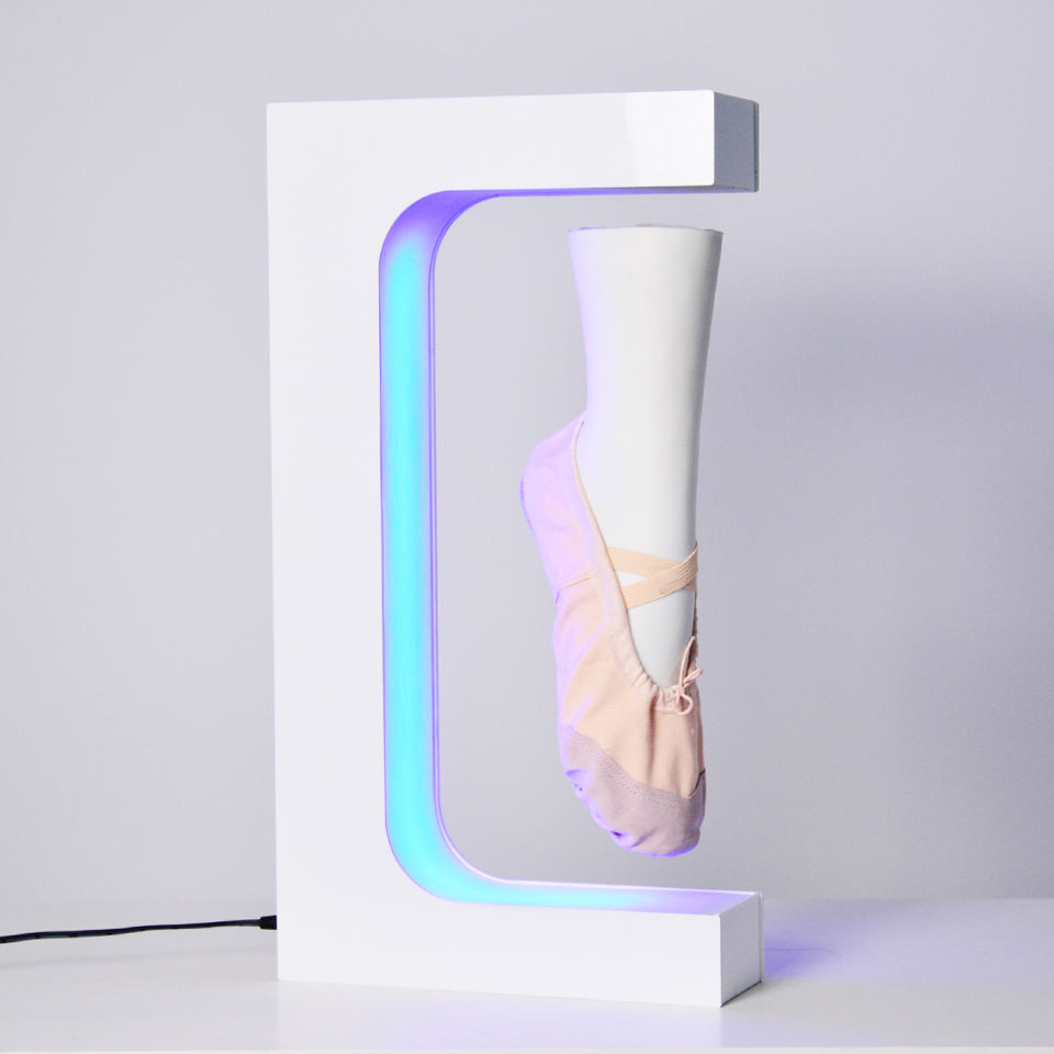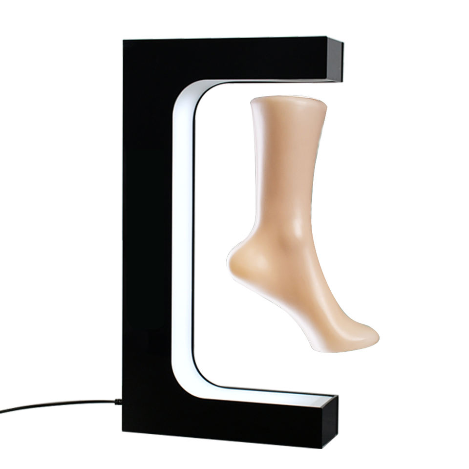 Expositor Magnético Flotante en Forma de E para Zapatos 2025, Personalizable, con Iluminación Colorida y Rotación Magnética para Exhibición de Calzado