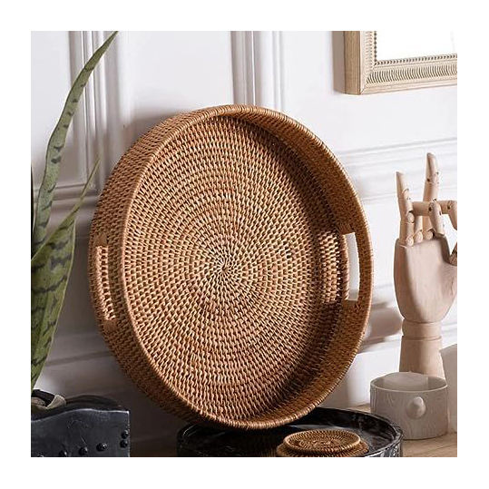 Bandeja redonda de ratán tejido Eco-Chic y cuerda Natural 2025, decoración hecha a mano para el hogar para mesa de centro y organización de comedor, hierba marina