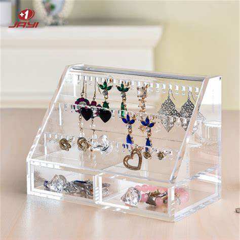 2025 elegante caja de almacenamiento de joyería acrílica a prueba de polvo con soporte de exhibición de pendientes de 4 estilos y soporte para cajón