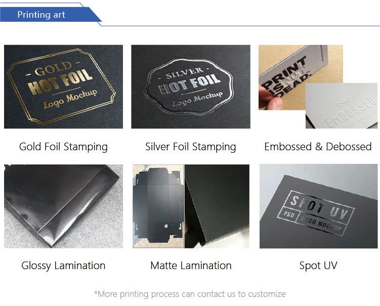 Manejo de la impresión:Bronceado, Estampado en frío, Troqueles, Relieve, Gofrado/Debossing, Impresión flexográfica, GLİTTER, Laminación brillante, Lámina de oro, Impresión de huecograbado, Estampado holográfico, Laminado, Corte por láser, Laminación mate, Membranae tectoria, impresión offset, IMPRESIÓN DE PANTALLA DE SEDA, Hoja de plata, Estampado, Texturizado, Revestimiento UV, Impresión ultravioleta, Desaparición, Barnizado