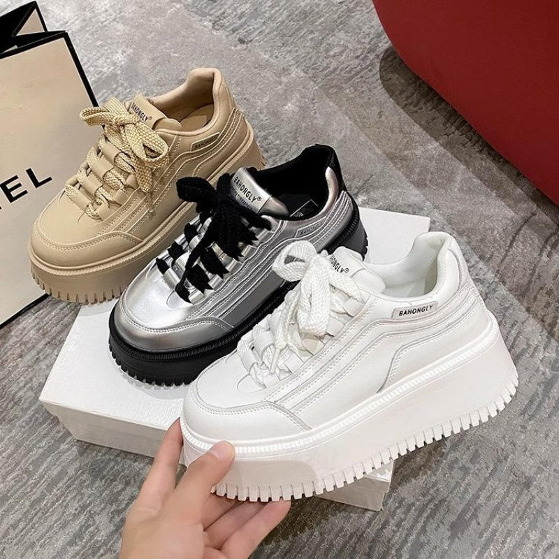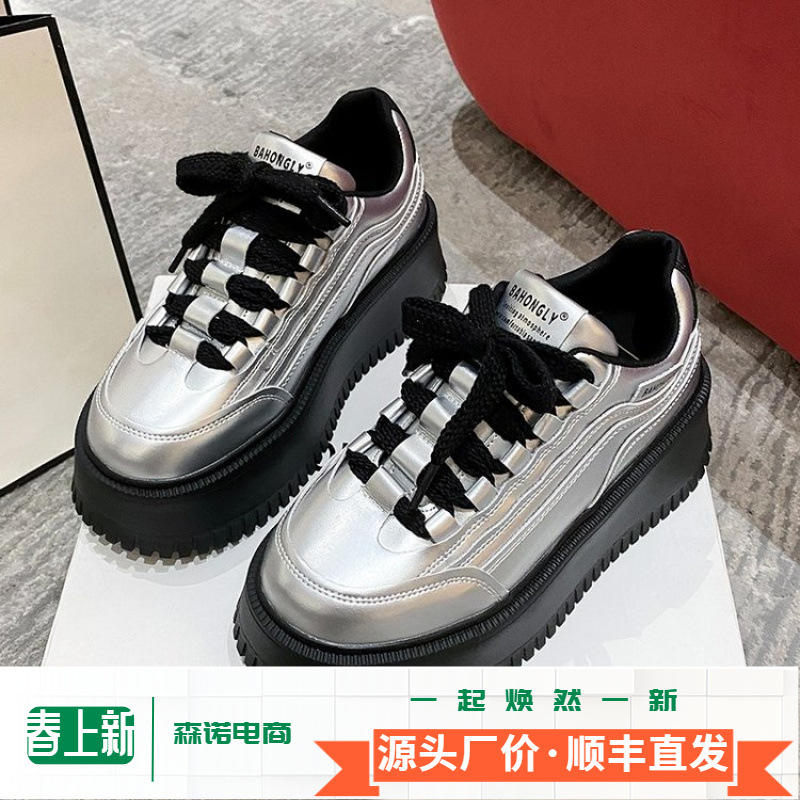 Zapatos Deportivos Casuales de Plataforma para Mujer, Estilo Europeo 2025, Ligeros, que Aumentan la Estatura, Combinan con Todo, Moda Plateada