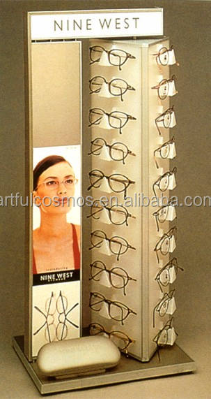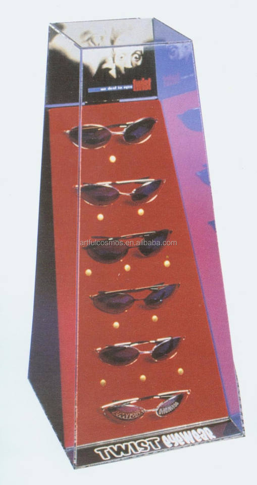Pantalla óptica acrílica a precio de fábrica 2025 para escaparate con muchos ganchos, estante de exhibición de gafas y gafas de sol al por menor
