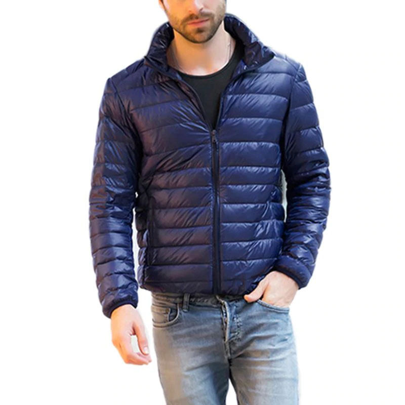 Venta de fábrica 2025, chaqueta ligera 90% para hombre, Parka acolchada con capucha de Color sólido, abrigo con soporte frontal, lona de alta calidad, recién llegado
