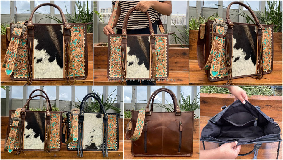 Nombre del producto:Hair On Tooled Leather Tote Bolsa