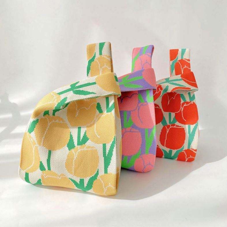 Bolso de Mano Tejido con Diseño Floral de Moda 2025, Bolso de Ganchillo Casual para Mujer, Bolso Tote Tejido