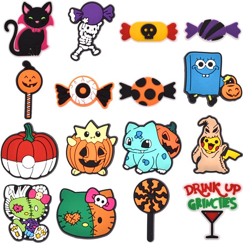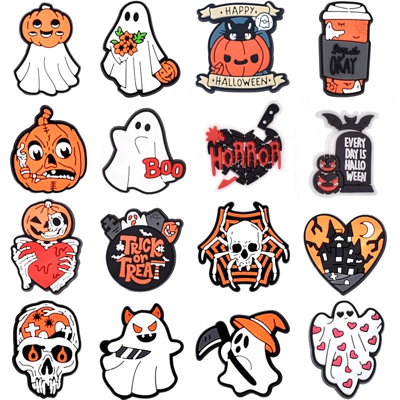 2025 zapatos de estilo de Halloween de moda encantadores personalizados últimos accesorios de zapatos de PVC encantadores al por mayor decoración de zapatos baratos de goma