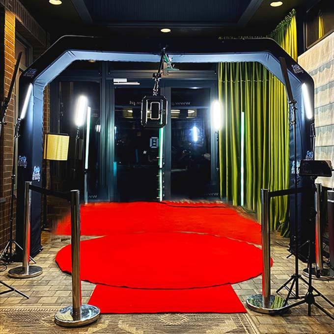 2025 moda Popular Overhead Kinscoter 360 Photo Booth Rgb 360 grados Led iluminación fondos