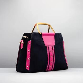 Bolsos de mujer de moda 2025 | Elegante bolso de cuero de ante con asa de metal dorado | Bolsos de hombro y cruzados de diseñador.