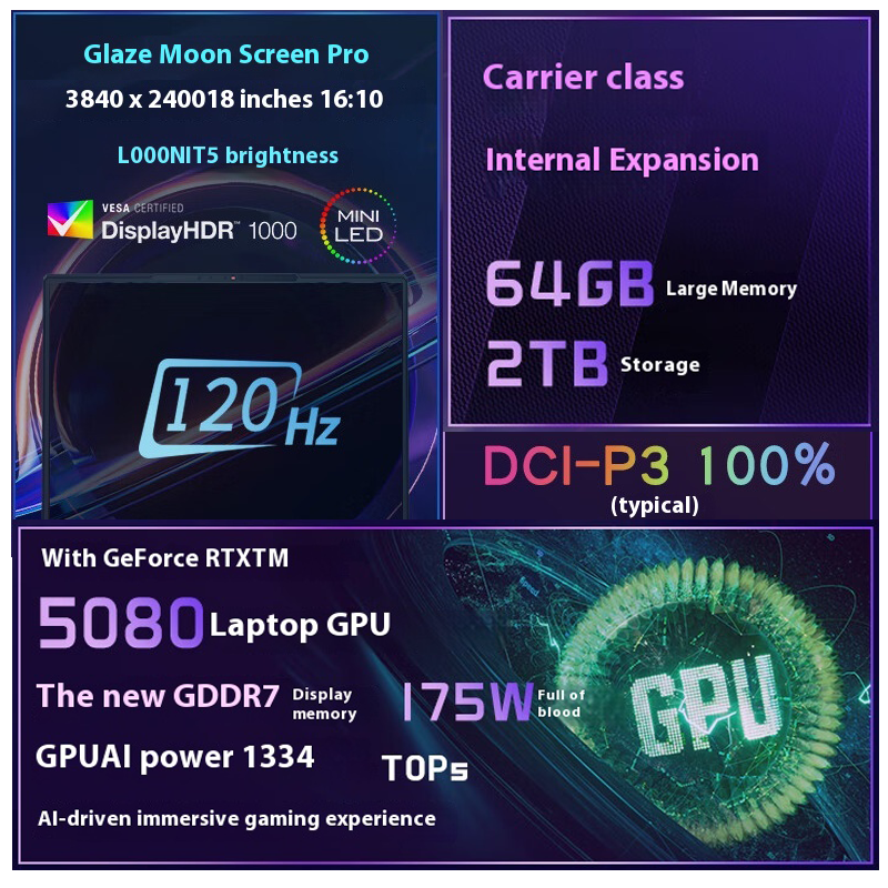 Pantalla:18 pulgadas 4K Mini LED-120HZ-100 % DCI-P3