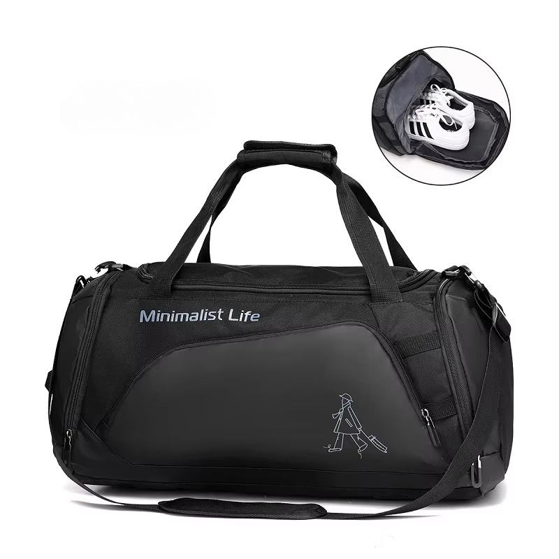 2025 Muestra gratis Bolsa de gimnasio de viaje grande personalizada Zapatillas de deporte de poliéster ligeras Duffle Seguridad superior Cierre de fin de semana Cremallera