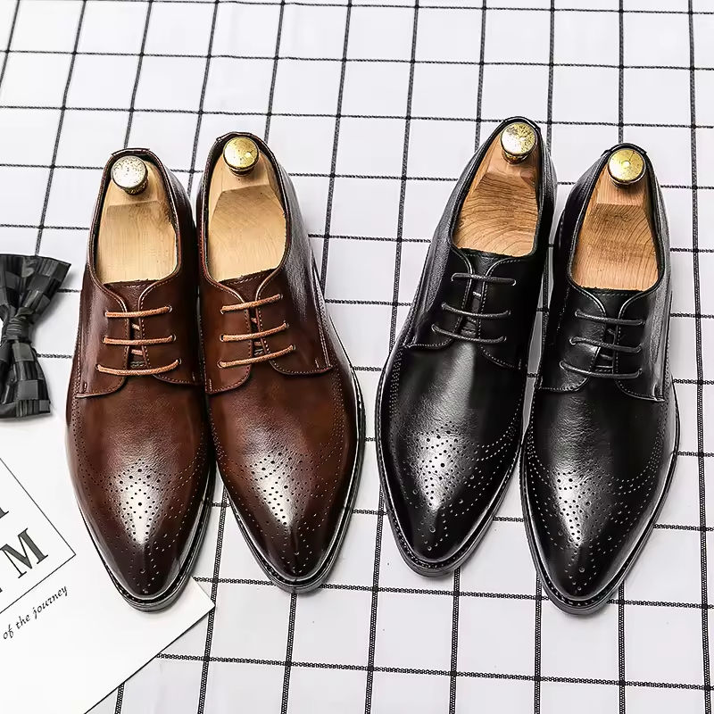 Zapatos Formales de Negocios para Oficina y Bodas, Hechos a Mano, con Cordones, Forro Rojo, de Cuero Genuino 2025, Impermeables, Transpirables, con Estampado