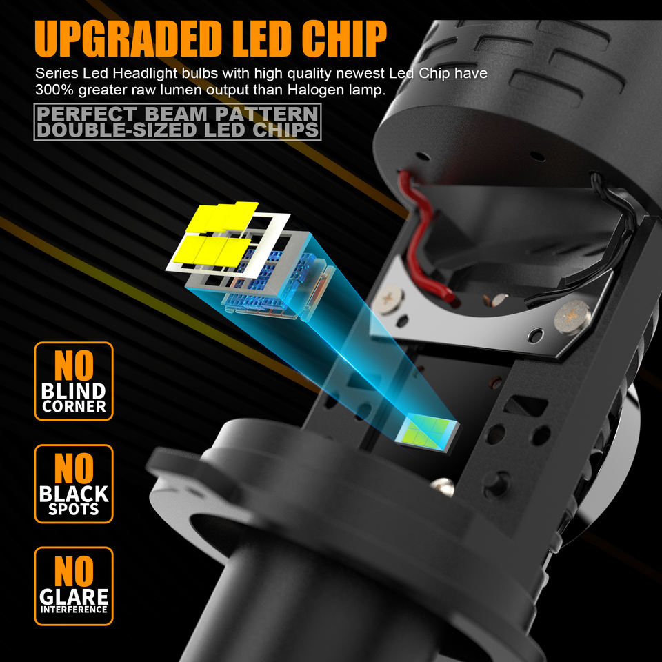 Foco Faro Delantero LED Mini Proyector H4 2025 de 110W 16000LM 6000K, Faros para Coche de Ajuste Universal con Grado de Impermeabilidad IP68