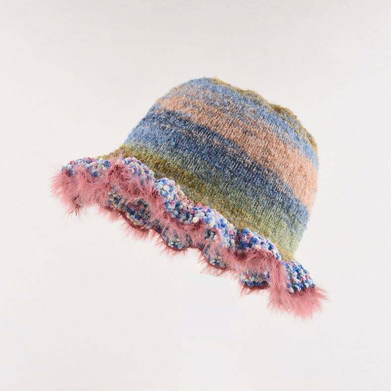 Sombrero de Ganchillo Hecho a Mano 2025, Sombrero de Invierno Colorido, Estilo Y2K, con Borde con Volantes, Sombrero de Carnaval Tejido